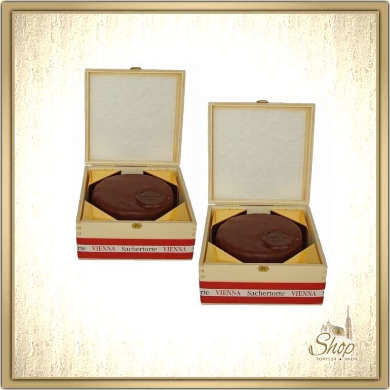 2 x Wiener Sachertorte - Grösse I - im attraktiven Holzkistchen (für 3 Personen)