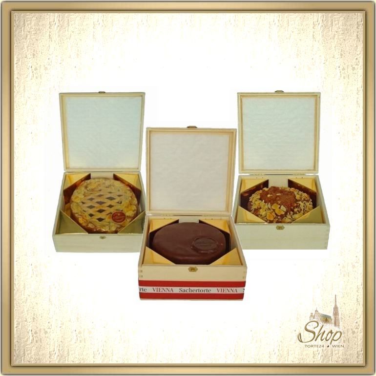 Wiener Sachertorte Gr. I, Kl. Linzertorte & Kl. Mandel-Orange Torte