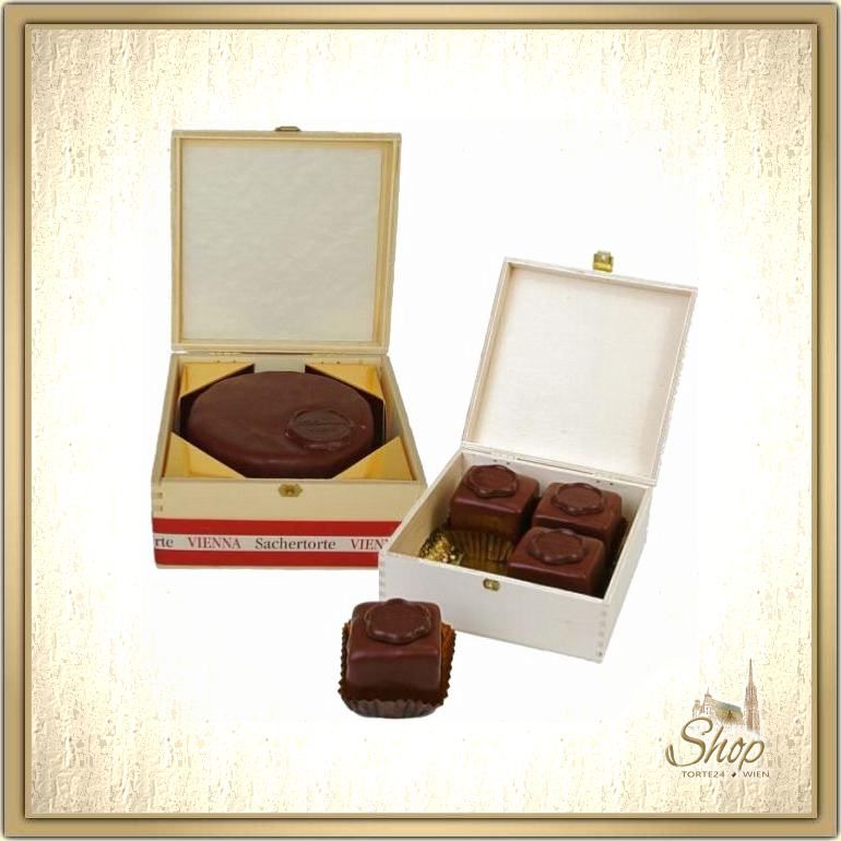 Sacher Torte - Grösse I & 4 Stk. Wiener Sacherwürfel im Kistchen